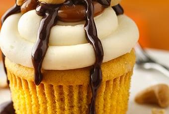Coloque el frosting en una manga pastelera con boquilla a elección y decore los cupcakes. Con la manga con dulce de leche ponga un poco de dulce de leche encima del frosting. Decorar con la salsa de chocolate y anacardos. Guarde en el refrigerador.