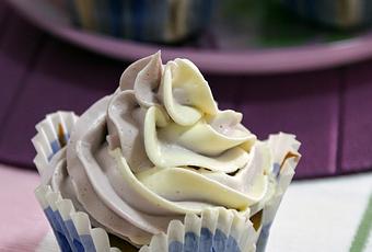 CUPCAKES DE VIOLETAS Y CHOCOLATE BLANCO