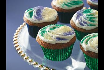 Hornear a 176°C durante 18-22 minutos o hasta que al insertar un palillo cerca del centro, éste salga limpio. Deje enfriar durante 10 minutos antes de retirar de la bandeja a una rejilla para que se enfríe completamente. Untar los cupcakes con el frosting de queso crema. Decorar con las azúcar de colores.