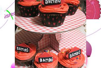 Unos cupcakes!!!! ¿Pero cómo los decoro? Algo que tenga que ver con nuestro trabajo, pues hala, logo del Metro al canto y tienen que ser rojos, para que pegue con el ROMBO