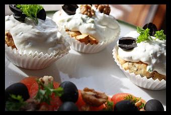 Ich habe neulich das erste Mal Cupcakes gemacht!!! Aber anstatt der üblichen süssen Version haben es mir die deftigen Cupcakes von "Ninas kleinem Foodblog" angetan.Nina hat in ihrem Blog einfach super leckere und vor allem originelle Rezepte, ganz zu schweigen von den Rezeptideen für Kinder die ich klasse finde!Wenn die Fotos der deftigen Cupcakes also Euren Appetit angeregt haben, dann habt Ihr hier den Link zum Rezept von Nina, ich hab es genauso nachgekocht wie sie es in ihrem Blog beschreibt. Nur die Deko bestand bei mir aus schwarzen Oliven und Nüssen, bei Nina gab es Cracker in Tierform und Kräuter.Als Beilage zu den Cupcakes habe ich ganz einfach einen Salat aus Tomaten, schwarzen Oliven, frischer Petersilie und Walnüssen gemacht, so hatten wir ein sehr leckeres und vor allem gesundes Mittagessen.Ich hoffe Euch gefällt das Rezept auch so gut wie mir!