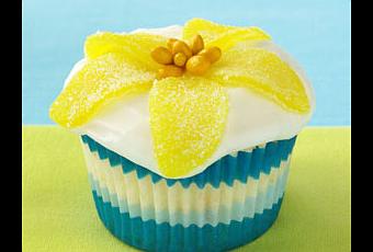 En un tazón pequeño, combine la mantequilla, la vainilla, la sal, el azúcar glass y la leche suficiente para lograr la consistencia deseada. Untar el frosting en los cupcakes. Guarde en el refrigerador. Decorar con flores o cáscara de limón si lo desea.