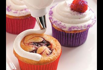 Prepare la mezcla para pastel según las instrucciones para del paquete para preparar los pastelitos. Coloque moldes de papel enmantequillados en una bandeja para muffins. Llenar los moldes hasta 2/3 de su capacidad.
