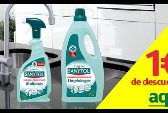 Hay una promoción para conseguir un cupón de 1 euro de descuento para los productos SANYTOL Multiusos o Limpiahogar.