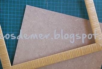 Como paspartú, un trozo de tela vaquera, procedente de unos pantalones tejanos negros que se transformaron en unos pantalones cortos.El color negro era el que mejor le iba a la fotografía, en mi opinión, ya que es una foto en blanco y negro.