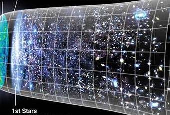 En sus primeros 250.000 años de vida mas o menos lo que conocemos como Universo era una especie de "caldo" que estaba formada básicamente por Helio y Hidrógeno y unos mil millones de años mas tarde la materia del Universo empezó a formas nubes... hasta que empezarian a formarse las primeras estrellas.