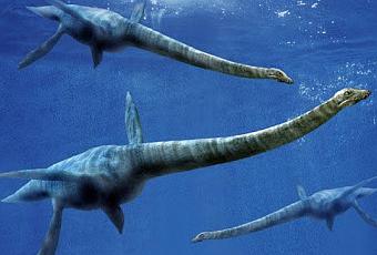 El Plesiosaurus fue un reptil marino de cuello bastante largo que vivió durante el jurásico temprano (hace unos 199-175 millones de años). Este miembro del superorde de los sauropterigios media unos 4,5 metros de largo y tenía un cuerpo musculoso, cuello largo y una cola corta y aplanada. Tenía cuatro extremidades similares a aletas unidas por pares al torso, le permitían propulsarse por el agua a gran velocidad. Su cabeza era pequeña y tenía varias filas de dientes curvos afilados con los que, una vez alcanzada la presa, no le daba posibilidad alguna de escapar.A pesar de su dominio de los mares, el Plesiosaurus no podía respirar debajo del agua como los peces, tenía que salir a la superficie para coger aire. Sin embargo, su gran tamaño le permitía permanecer un tiempo considerable sumergido y atacar varias veces bancos de peces o calamares.El Plesiosaurus vivía en mares poco profundos de lo que ahora es Europa. Su tamaño, agilidad y ferocidad le hacían el rey. En sus orígenes este dominio hizo que la orden evolucionara separándose en dos linajes: Pliosaurs y Plesiosaurids. El primero desarrolló un cuello más corto y una cabeza más alargada, mientras que el segundo tenía un cuello desproporcionado similar a una serpiente. Debido a esta divergencia cada uno de los linajes empezó a pescar una variedad cada vez más amplia de animales. Algunos gigantes, como el Pliosaurus funkei (antes "Predator X"), incluso atacaban a otros Plesiosaurus. El Plesiosaurus se extinguió en el Jurásico medio (hace unos 175 millones de años), siendo sustituido por parientes más grandes y dominantes como el Elasmosaurus. Sin embargo, el orden de los Plesiosauria sobrevivió mucho tiempo más, hasta la llegada de la gran extinción del Cretácico-Terciario.CIENCIA-2