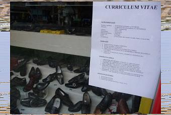 El escaparate de una zapatería tenía un cartel. En principio, pensé que podría ser una oferta de trabajo. No son muchas las tiendas que hoy piden gente así, pero aun se pueden encontrar algunas. Pero este cartel, desde la distancia, tenía más letra… Así que me acerqué y me sorprendió ver allí, colgado, un currículum y me dije: ¡No es posible!