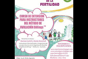 Estimados amigos para participar del Curso de Extensión de Instructores del Método de la Ovulación Billings TM es requisito haber realizado el Curso Básico de Instructores del MOB, es por ello que del 20 al 22 de julio estaremos desarrollando un curso para quienes estén interesado en el Curso de Extensión del MOB
