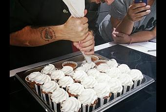 Una de las recetas que aprendimos fueron los cupcakes de chocolate con crema de cacahuete.