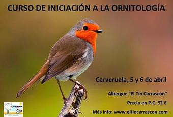 Este fin de semana, 5 y 6 de abril, tendrá lugar en el albergue "El Tio Carrascón" en Cerveruela un curso de iniciación a la ornitología, destinado a personas que tengan poco o nulo conocimiento de la ornitología pero que deseen iniciarse en el apasionante mundo de las aves.