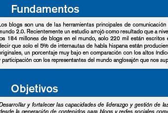 Cada participante creará su propio blog personal, y se habrá generado un proceso de creación de contenidos para el sitio oficial de su Red u organización.