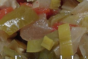PREPARACIÓN:Primero preparamos la carne de la siguiente forma, pochamos la cebolla con los pimientos y el ajo, no hace falta hacerlo demasiado, mientras vamos cortando la pechuga (nosotras la hicimos pequeña, pero partirla como mas os guste, hicimos todo en cuadraditos), doramos un poco el pollo, le echamos un buen chorro de salsa soja y medio vaso de agua con una cuchara de Maizena disuelta, luego le eche un poco mas de agua, queríamos que quedara con caldo para mezclarlo con el cus cus. Se prepara enseguida.
