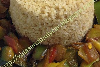 Se puede hacer de dos maneras : 1º hacer el cuscús: poner el cuscús, la mantequilla, sal y el agua en la cubeta de la GME, remover bien, tapar con válvula cerrada, menú turbo, 7 minutos, cuando termine despresurizar manualmente, sacar y reservar, ahora meter las verduras, la salsa de soja y el aceite en la cubeta de la GME, tapar con válvula cerrada, menú turbo, cuando termine despresurizar manualmente y servir junto al cuscús.2º hacer todo junto: poner todos los ingredientes en la cubeta de la GM E remover, tapar con válvula cerrada, menú turbo, 7 minutos, cuando termine despresurizar manualmente, remover y servir.