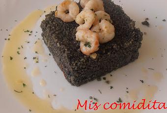 CUSCUS NEGRO CON VERDURAS Y GAMBAS SATEADAS