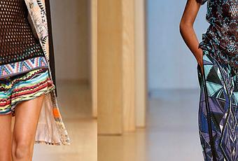 En la pasarela hemos visto desfilar minivestidos y shorts de corte evasée de puntillas y guipur junto con sudaderas caladas de guipures geométricos ondulantes con acabados sinuosos que visten la mujer Custo Barcelona s/s 2015.