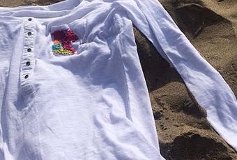 Hoy traigo una nueva idea para customizar una camiseta.Es muy simple y en este caso le he bordado únicamente el bolsillo con hilo de muchos colores y de forma aleatoria, sin seguir un patrón concreto, lo que está de moda ahora y es conocido como Freefrom.