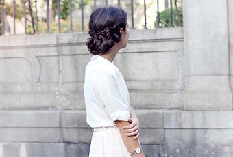 Con el calor que está haciendo solo puedo pensar en llevar looks sencillos que me permitan soportar las altas temperaturas, como el que os enseño hoy con falda larga y camisa blanca, es una ventaja porque no tardo nada en vestirme pero reconozco que estoy empezando a echar de menos jugar a mezclar capas, llevar jerseys, abrigo... estoy un poco loca ¿no? jaja, pero la realidad es que me gusta más la ropa de invierno, siento que varío más a menudo y me divierte mucho más... así que mientras las temperaturas bajen he decidido entretenerme con el pelo probando peinados nuevos, este que os enseño me encanta, dos trenzas a los lados y un recogido bajo, tardas 5 minutos en hacerlo y es otra forma de evitar que el pelo de calor, aportando además un toque diferente a tu look verano. Prometo enseñaros como hacerlo :) ¿Qué os parece? ¿Qué peinados os hacéis en verano?PD: Mañana es mi cumple :)!! Estoy pensando todavía como voy a celebrarlo! Muuuuuas y mil gracias por todos vuestros comentarios. In summer I only can think in wear simple looks that allow me to withstand the high temperatures, today's outfit is a clear example of that!, this is an advantage because is so easy choose a summer outfit, but I've to admit I miss play with layers, wear sweaters, coats ... I'm a little crazy, right? haha, but the reality is that I like winter clothes, I feel that I vary more often and enjoy dressing myself ... so while the cold dosen't arrive I've decided play with my hair testing new hairstyles like this one I show you today, two braids on the sides and a low chignon, something simple that gives a different touch to my summer outfit. I promise I'll so you a DIY soon. Do you like it?. Have a lovely day :) SÍGUEME // FOLLOW ME ON FACEBOOK ♥ BLOGLOVIN ♥ TWITTER XOXO COLLAGE VINTAGE