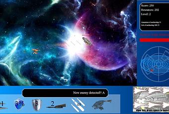 He querido recrear en este juego lo que sucede a nivel táctico en ese juego, pero con elementos de desarrollo que no aparecen en la película. En este caso nuestra nave puede ser mejorada después de cada ronda, incrementar su potencia de fuego, su blindaje, los escudos, la cantidad de torretas, aumentar el número de escuadrones. También nos iremos encontrando con flotas enemigas cada vez más poderosas y desarrolladas lo cuál nos pondrá en un aprieto. En especial en las primeras rondas. Para ello también contaremos con escuadrillas de cazas “viper” que podemos utilizar para defendernos.