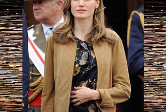 Dña. Letizia llevaba sus gafas Ray-Ban colgadas del cuello de la blusa. (Atención al gesto de la Princesa de la primera imagen).