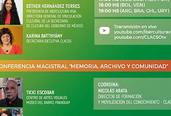 - IberCultura Viva, programa de cooperación intergubernamental presidido por México a través de la Secretaría de Cultura federal, realizará el evento virtual “Memorias Vivas. Archivos comunitarios en pandemia”, del martes 26 al sábado 30 de octubre, con el fin de reflexionar sobre este tipo de almacenamiento documental donde se resguardan las memorias individuales y colectivas de las sociedades.