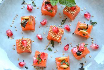 Cómo preparar los Dados de Salmón Marinado con Granada y Hierbabuena: