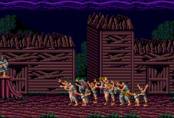 A final de cada stage deberemos enfrentarnos a un boss. El primero de ellos es un jinete muy boludo y sencillo de aniquilar. Solamente con quedarnos en el medio de la pantalla y saltando bajo (si saltamos apretando y apretamos para arriba, salta más alto) cada vez que se acerque a empalarnos: de esta forma lo esquivamos y rápidamente le ensartamos un espadazo. En términos generales, los niveles son el triple de difícil de lo que son los bosses. El segundo nivel es un claro ejemplo de esto: empezamos arriba de un caballo bajando a los gomazos a través de un camino descendente, esquivando a soldados y caballería enemiga. Ese nivel es sumamente difícil, siendo quizás el más complicado del juego. Es muy probable que pierdan los cinco continues del juego. Con preserverancia y la magia del save&load de la emulación podrán entender cómo saltar para que los malosos no los empalen.