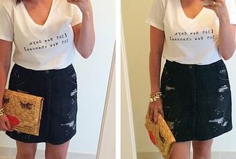 Falda: Zara (sales)/ Camiseta: Zara (old)/ Cuñas: Fosco/ Clutch:Suiteblanco (old)