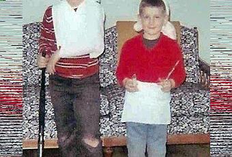 A mi hermano le encantaban los deportes y ser particularmente chillón y, como se ve, vestir zapatos de jugar a los bolos.