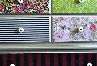 La transformación de la cómoda como veis con el "antes" y "después" es espectacular. Se ha mantenido el blanco original del mueble y se han forrando los frontales de todos los cajones con papeles de colores muy llamativos y estampados diversos. El resultado es un mueble precioso, que quedará perfecto en cualquier dormitorio o rincón de la casa. Me han gustado mucho los colores llamativos y esos estampados para utilizarlos en un mueble de cajones para un dormitorio infantil. Me está gustando cada vez más eso de darle una segunda oportunidad tan bonita a muebles que muchas veces tenemos olvidados.