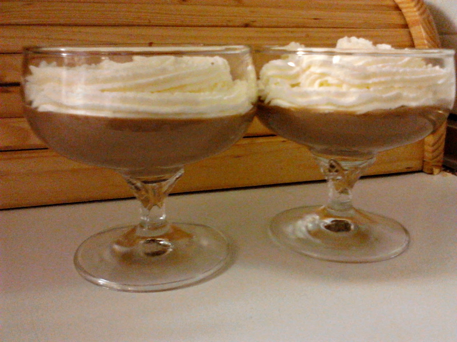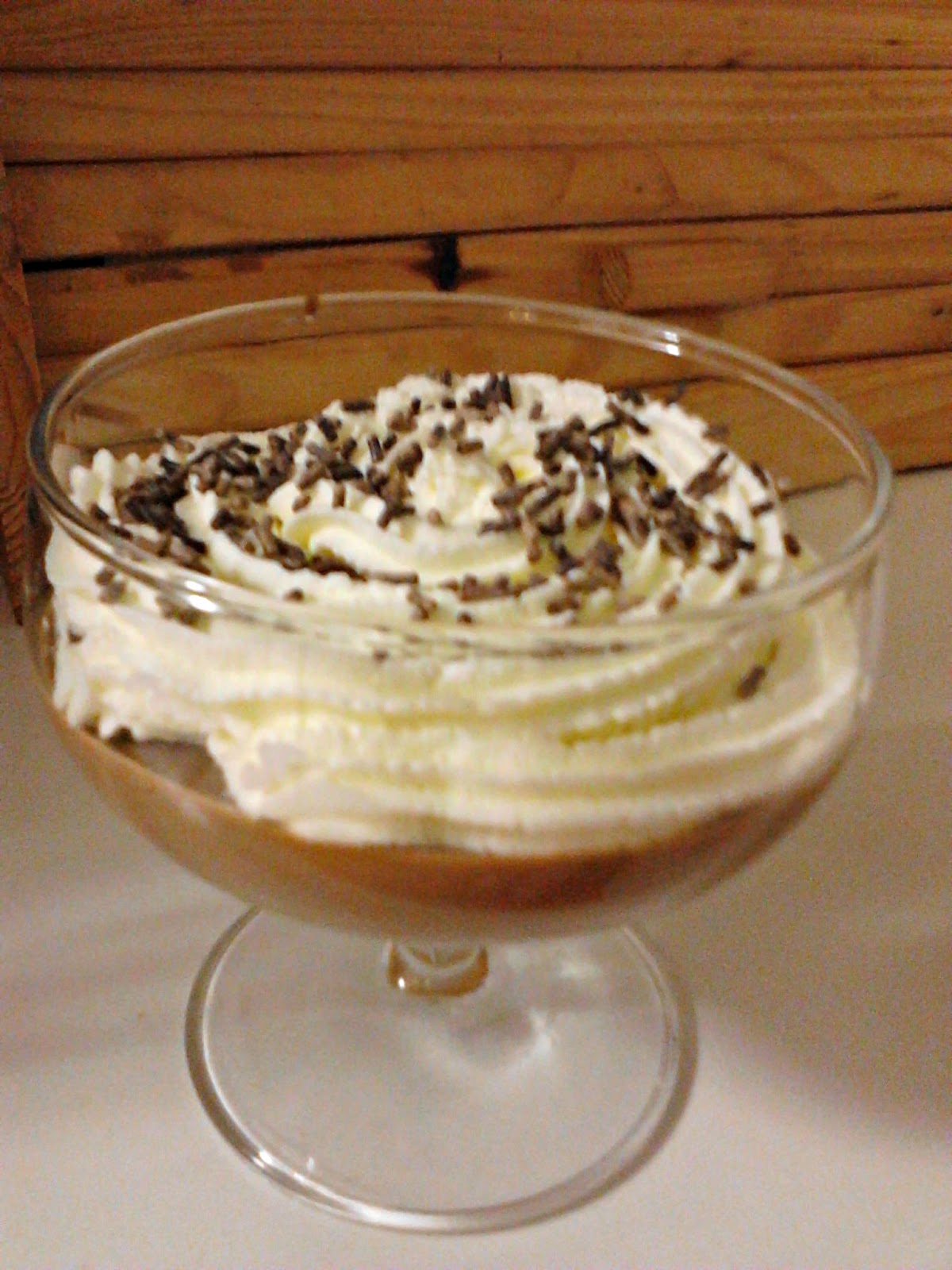 Se sirve en unas copas/vasos bonitos y esperamos a que se enfríe (unas 2 horas en la nevera aprox.). Cuando lo vayas a consumir, añade nata montada o de spray ( la mía va a ser montada, ya que estamos seguro que queda más rico) , con virutas de chocolate para que te quede más vistoso.