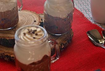 Para el montaje colocamos una capa de galletas, después frutos rojos. una capa de crema de chocolate y terminamos con la nata.Metemos al frigo y listo para comer.