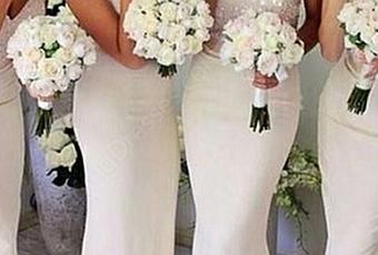 Hoy en día las damas de honor suelen elegir vestidos de estilo similar al de la novia y suelen ir todas iguales en color, corte o tejido.