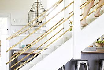 Siempre he sentido predilección por los materiales sencillos. La cuerda lleva con nosotros desde la prehistoria, pero últimamente la miro con otros ojos. Simplemente me atrae. Desde sus usos más sencillos, como cestos, alfombras, pufs..., hasta el pasamanos de esta escalera que descubrí en el blog Entre Barrancos y que tanto ha despertado mi atención. Original, ¿verdad?