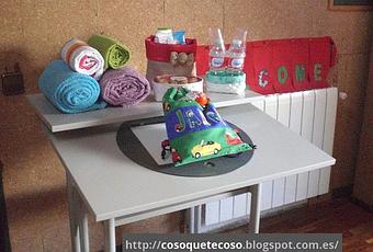 Así preparé para dar la bienvenida a mis invitados la semana pasada.Unas toallas bien dobladitas, una cesta con unos imprescindibles, otra cestita con agua, otra con unos bombones y la mochila con el garaje y los coches para Jakob.