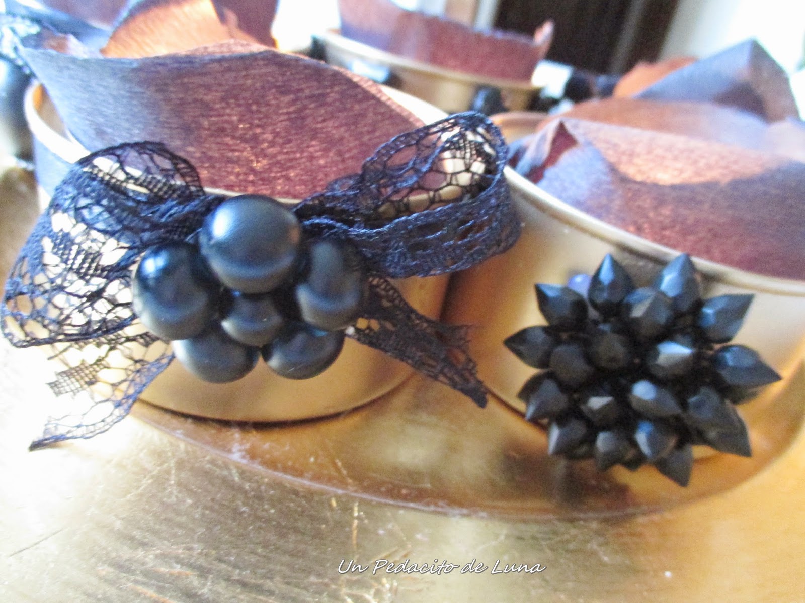 Algunas puntillas, lazos de raso, borlones.....Y listo!!Convertidas de latas a portavelas, destellan ahora a la luz de las mismas!!