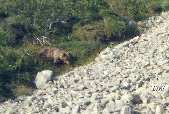 El primero, observar osos en libertad; Y dicho y hecho, la primera tarde que dedicamos a tal menester tuvimos suerte, en gran medida gracias a Jose Alberto, Iker y Diego, del blog "Birding en León" con quienes coincidimos de casualidad en Pola de Somiedo y que nos orientaron perfectamente de dónde y cuándo dar con los plantígrados somedanos.