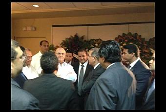 Ambos se encontraron en la funeraria Blandino, en el velatorio del cuerpo del ex diputado del Partido Reformista Social Cristiano -PRSC-, Wenceslao Paniagua, quien falleció por quebranto.