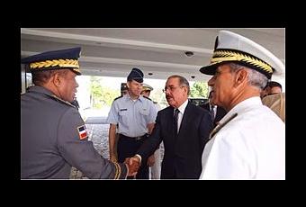 Entre quienes recibieron a Danilo figuran el Ministro de la Defensa, Sigfrido Pared Pérez, y el Jefe de la Policía Nacional, Manuel Castro Castillo.