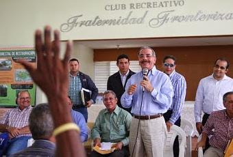 El presidente Danilo Medina realizó este domingo una visita al paraje Hipólito Billini, en Restauración, provincia Dajabón, la cual se produce por una solicitud que le hicieran sus residentes durante la inauguración de 38 nuevas aulas en ese municipio esta semana.Durante el referido encuentro el presidente Medina escuchó los planteamientos de 13 comisiones de representantes y de asociaciones de la comunidad, los cuales expresaron al mandatario que esa comunidad aún no cuentan con proyectos terminados.