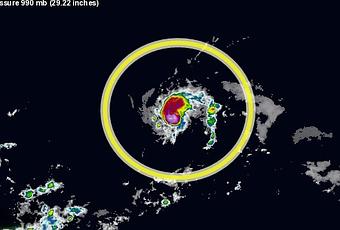 El sistema se ubica a 1655 km al Este de las Islas de Barlovento, posee vientos máximos de 130 km/h con rachas superiores de 152 km/h, tiene un movimiento Oeste - Noroeste a 17 km/h y su presión central es de 990 hPa.
