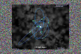 Lo cierto es que un agujero negro no se puede ver ya que ni siquiera la luz puede salir de él. En el Max Planck Institute for Extraterrestrial Physics han creado una animación a partir de los datos de las órbitas de las estrellas que están girando alrededor del agujero negro, verlas girar es en cierto modo ver como la gravedad del agujero negro dicta de forma inexorable como deben danzar estas estrellas a su alrededor: