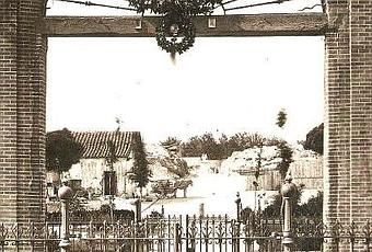 Fue al llegar el año 1869 cuando los buenos de Daóiz y Velarde emprendieron un nuevo viaje, éste les llevo muy cerca del lugar que ahora habitan, a un espacio denominado la Era del Mico y que actualmente se ubicaría en las confluencias de las Calles de Carranza y Ruiz, cerca del Metro Bilbao. En esta fotografía antigua donde aparece en primer término el arco del Cuartel de Monteleón que ocupa la Plaza del Dos de Mayo podemos verles asomar al fondo de la imagen en su ya conocida postura.