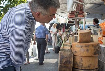 La campaña distorsiona. Las horas se acumulan y es fácil confundir una cuña con un queso redondo y completo. Tampoco resulta extraño que la fotógrafa acabe en catadora y defienda la ingesta nocturna por sana y láctea, como la Vía. La campaña deja algún momento libre. Hoy, seis minutos y 36 segundos, tiempo de sobra para la compra. En el mercadillo de Rentería, la temperatura electoral roza el desmayo; en la Catedral Vieja de Gasteiz, visita de médico; en el Parlamento, una cita para más adelante. Tortilla de patata en la furgoneta. Lástima de callos en Lasarte. O en último caso, el queso. No es cuña.