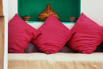 No es fácil, pues en ocasiones tanto color puede llegar a cansarnos o ser estridente, pero si sabemos aplicarlo en unos tonos adecuados y combinarlo con objetos cotidianos, como en este caso, podemos tener el éxito asegurado. La decoración marroquí, como en otras facetas, tiene su razón de ser en el color en sí.