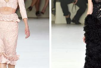Creaciones etéreas y ligeras SarahBurton consigue dar un toque oscuro para los diseños de la primavera de 2012 de Alexander McQueencolección.