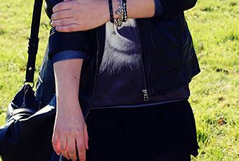 Sudadera: Mr Gugu & Miss Go (f/w 13-14) (aqui) | Falda: Oasap (f/w13-14) (aquí) | Botines: Xti Shoes | Bolso: Zara | Biker: Pimkie | Pulseras: Elaboración propia+Thomas Sabo | Fular: Tienda local