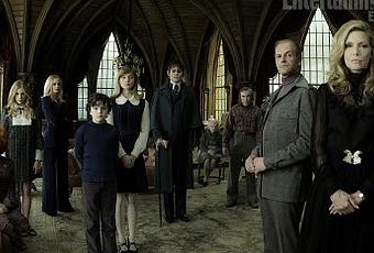 Les presento a la familia completa, de izquierda a derecha:La Dra. Julia Hoffman (Helena Bonham Carter): Tim Burton no puede dejar de presentar a su mujer como una persona transtornada, sino recuerden pelas como Alicia en el País de las Maravillas o Sweeney Todd, ahora como una psiquiatra que se aloja en la casa de los Collins para ver los problemas del niño de la casa, aunque sin ningún progreso, porque él sigue afirmando que ve fantasmas y habla con su madre muerta.Carolyn Stoddard (Chloe Moretz): Famosa por sus papeles en Kick-Ass como Hit-Girl y como una vampira en Let me In, representa en lado "humano" en la película, es la típica adolescente de la década de los setenta, que le gusta la música y las revistas y eso no le gusta a nadie de la familia, además de mantener siemrpe su puerta cerrada y encerrarse en sí misma. Es bastante normal, pero las apariencias engañan...Angelique Bouchard (Eva Green): La disfrutamos al máximo como chica Bond en Casino Royale, y aquí es la villana de la historia. Es una bruja que conoció a Barnabás en 1700, tiempo en el que tuvieron una aventura que no terminó nada bien, maldiciéndolo a ser un vampiro y a ser encerrado en una caja. A través de los años ha tratado de destruir a la familia, y al aparecer nuevamente el patriarca, no está para nada felíz.David Collins (Gulliver McGrath): Un niño solitario, confundido y abandonado por su padre Roger Collins, no tiene a nadie en quien confiar, salvo en su extraña psiquiatra y en los muertos que dice ver.Victoria Winters (Bella Heathcote): Esta joven se convertirá en la nueva institutriz de David, además de ser el foco de atención de Barnabas, creando en él una atracción inmediata y remontándolo a los tiempos en que era humano.La Sra. Johnson (Ray Shirley): La anciana sentada detrás de Barnabas Collins (Johnny Depp del que ya hemos hablado hasta la saciedad en su papel del vampiro) es una mujer criada por sordos que hace "tontería y media" en la pela. Un personaje añadido por Burton.Willie Lumis (Jackie Earle Haley): Es el jardinero del hogar de los Collins, un tipo que debería sacar la basura, cortar el césped y lavar los autos, aunque al parecer para borracho todo el día y no se da cuenta de lo que hace, puesto que todo está abandonado. Roger Collins (Johnny Lee Miller): El heredero de la alguna vez gran familia Collins es una de las principales razones por las que este clan aristocrática se encuentre en la desgracia. Es un mal padre, egoísta y uno de los que ha dilapidado la riqueza de la familia, por lo que tendrá más de un enfrentamiento con Barnabas.Elizabeth Collins Stoddard (Michelle Pfeiffer): Es la madre de Carolyn Stoddard y la figura materna de David, es el miembro adulto del clan de los Collins, la más competente, la matriarca. Es el guardián de su historia y protectora de lo que queda de ella, aunque con una bruja amenazante y vampiros que quieren tomar el control, las cosas pintan feas para ella.Este film está anunciado para el 11 de mayo del 2012, y ahí recién veremos que papel juega cada uno de estos particulares personajes....