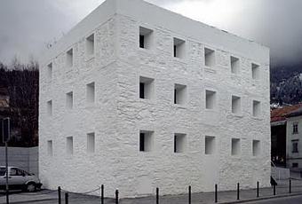 “En origen, la casa era propiedad de la parroquia de Flims y mi padre, el también arquitecto Rudolf Olgiati, se suponía que la casa se renovaría manteniendo sus preceptos arquitectónicos. Entre otras cosas, mi padre estipuló que la casa debería pintarse de blanco y que la cubierta debería ser de losas de piedra. Tras la muerte de mi padre, la parroquia decidió convertir la casa en un espacio de exposiciones. Como la intrincada estructura interior de la casa no era apropiada para este nuevo propósito, tuvimos que adoptar un decisión drástica. El edificio se destripó por completo: se reconstruyó el interior, se arrancó el revoco exterior para dejar los muros de piedra vistos, se levantó el tejado y se sustituyó por losas de piedra con formas azarosas.