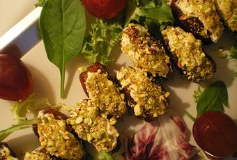 Dátiles deshuesados y de un buen tamañoQueso crema de untarPistachos